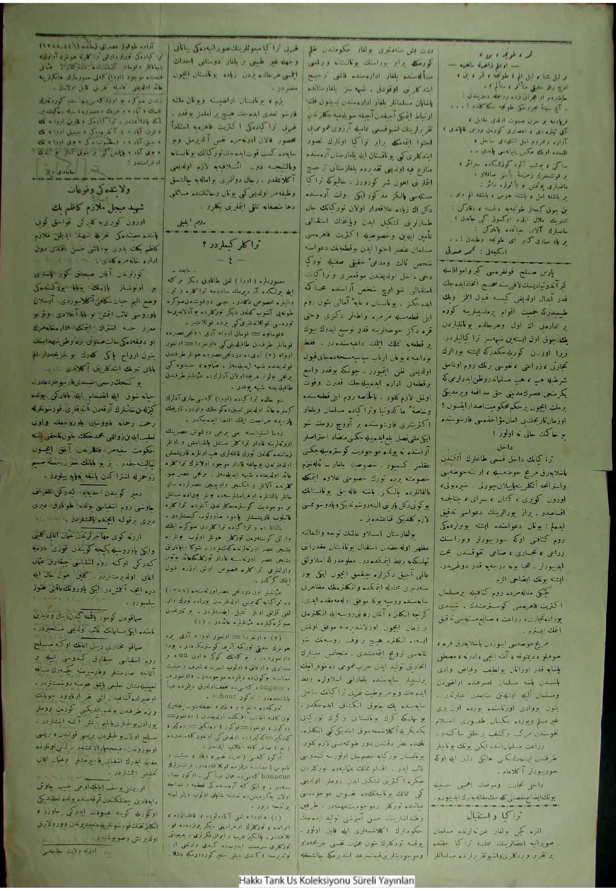 Osmanlıca Tarihi Yerel Gazeteler Transkripsiyonu