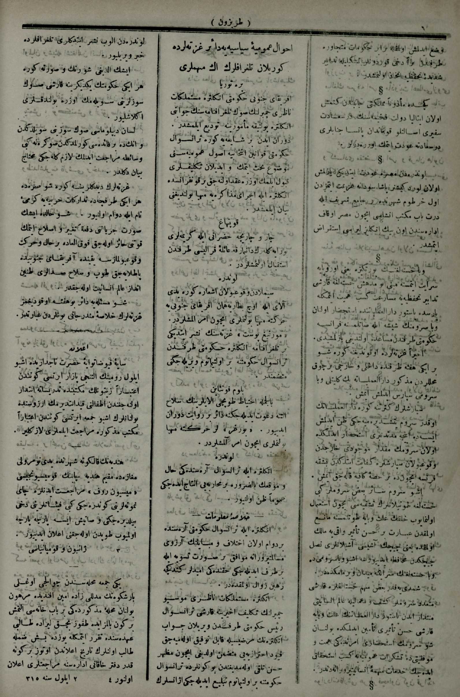 Osmanlıca Tarihi Yerel Gazeteler Transkripsiyonu
