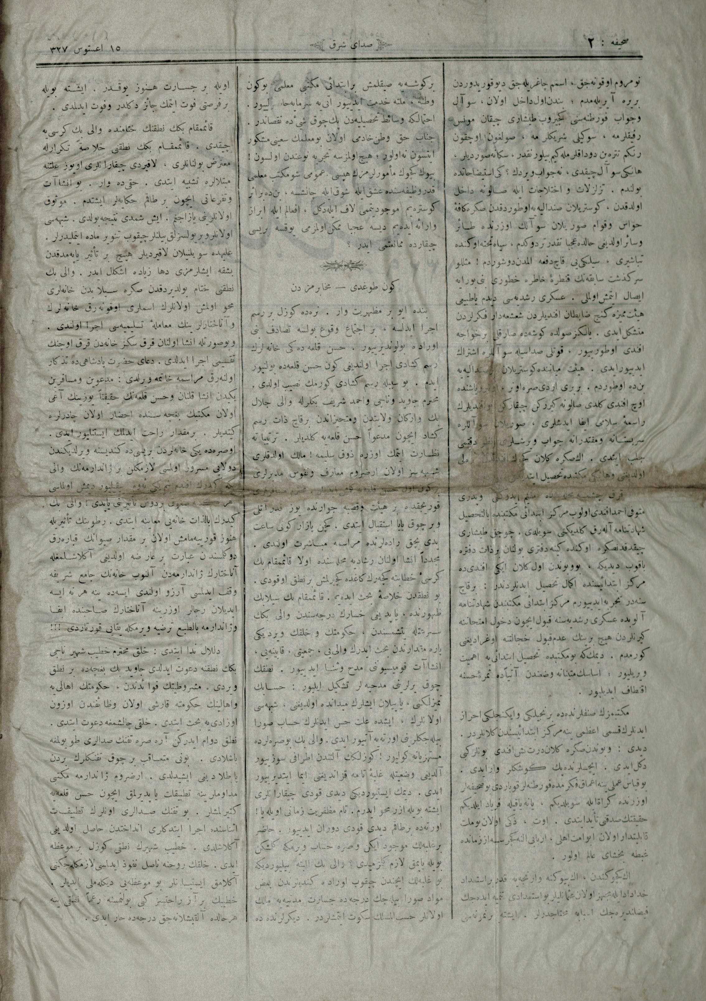 Osmanlıca Tarihi Yerel Gazeteler Transkripsiyonu