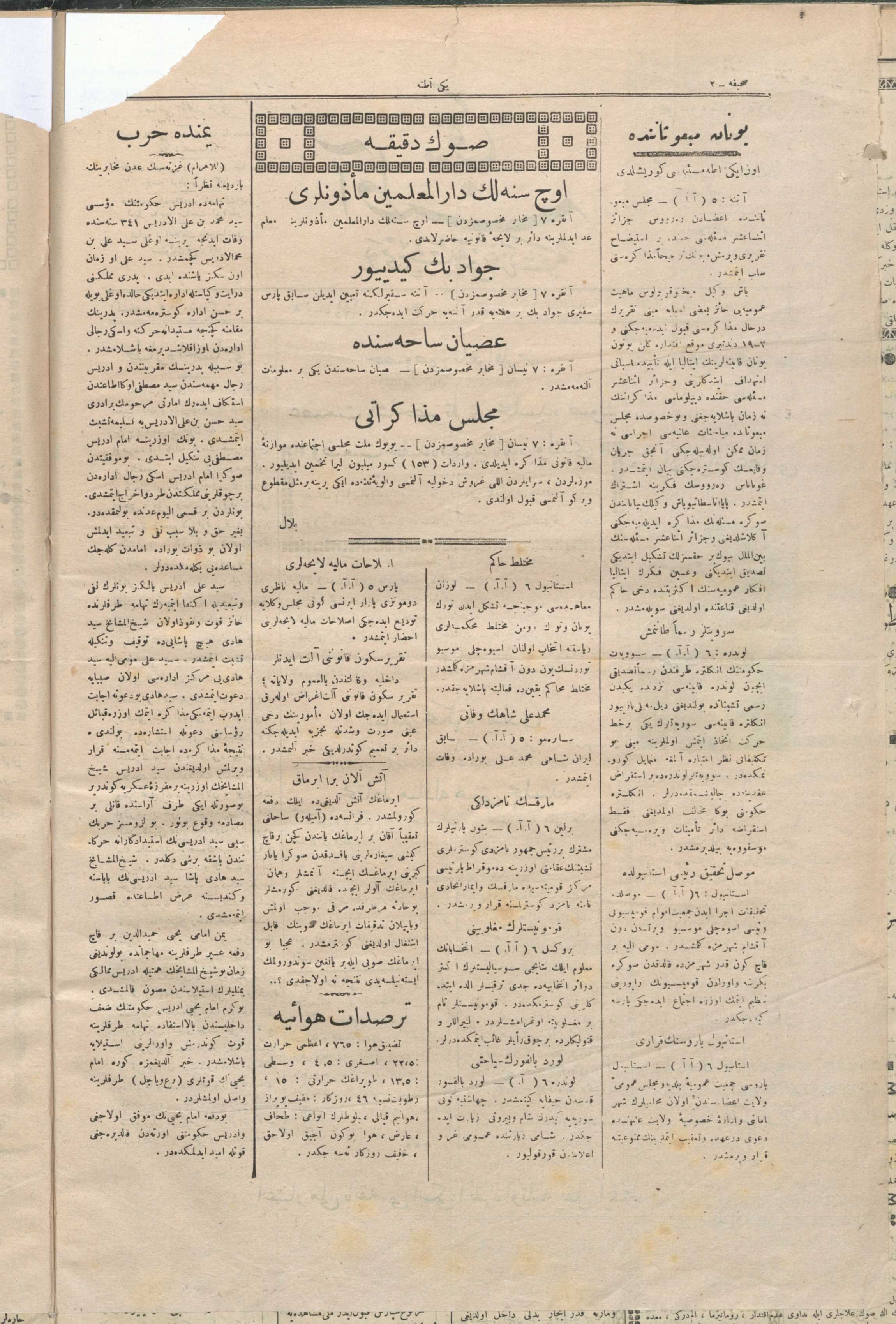Osmanlıca Tarihi Yerel Gazeteler Transkripsiyonu