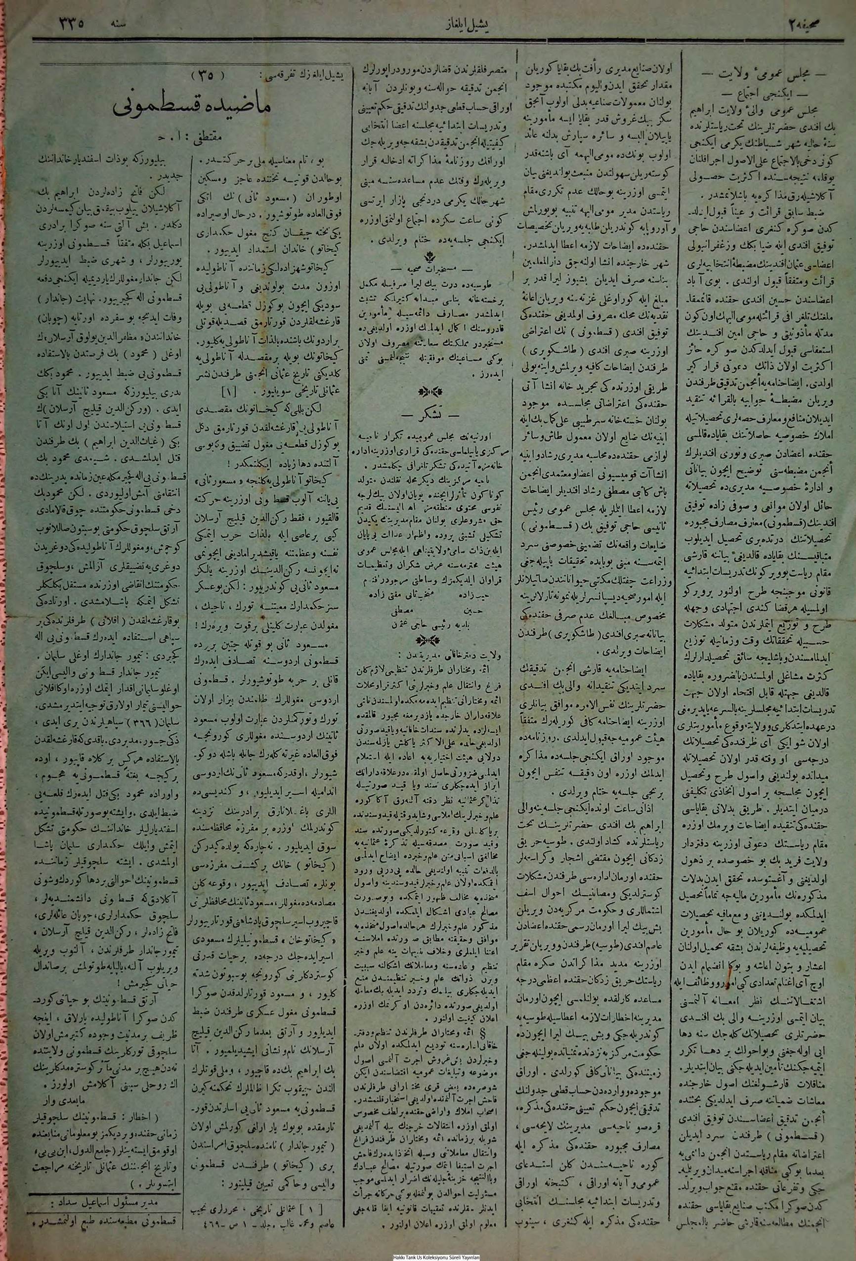 Osmanlıca Tarihi Yerel Gazeteler Transkripsiyonu
