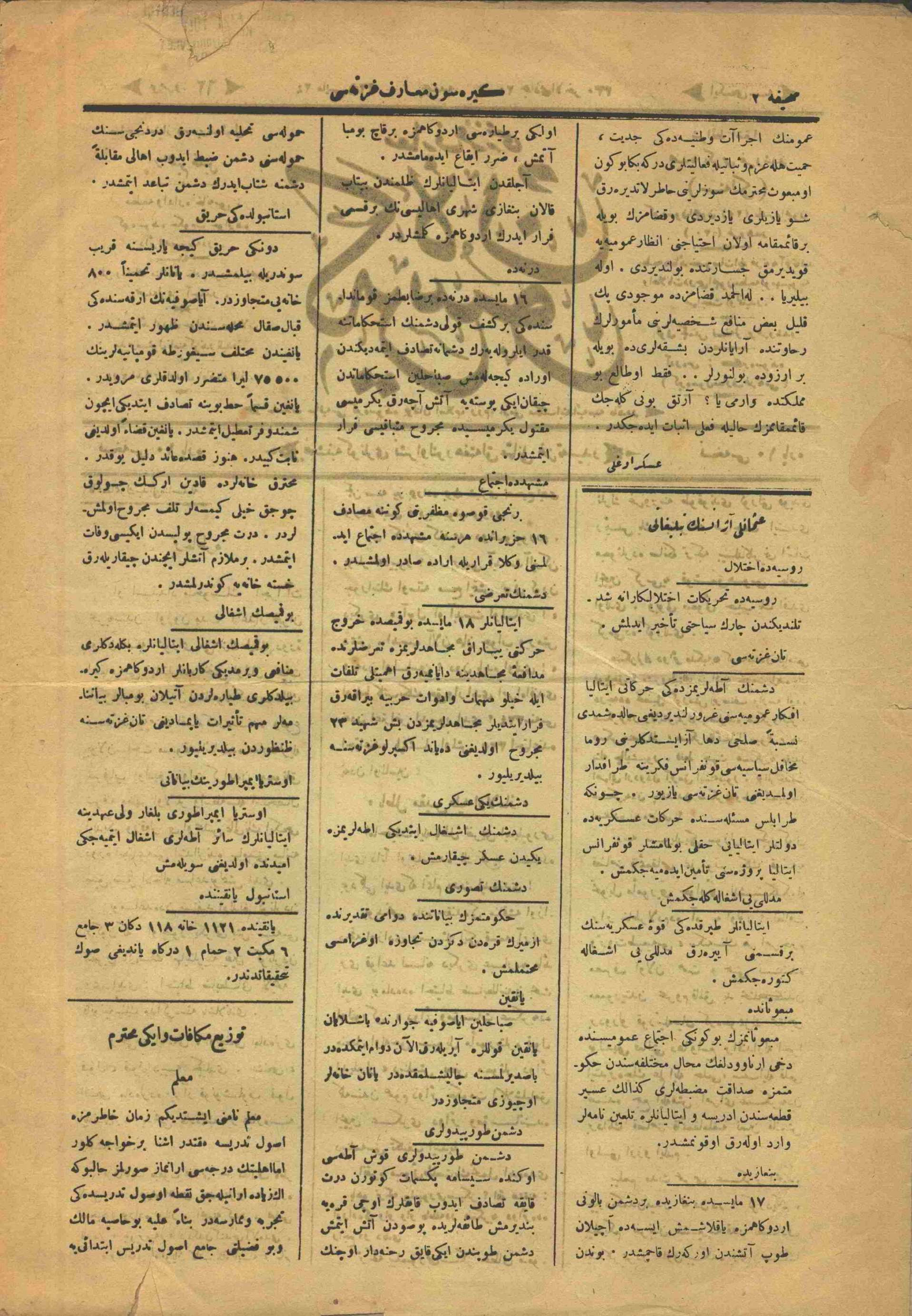 Osmanlıca Tarihi Yerel Gazeteler Transkripsiyonu