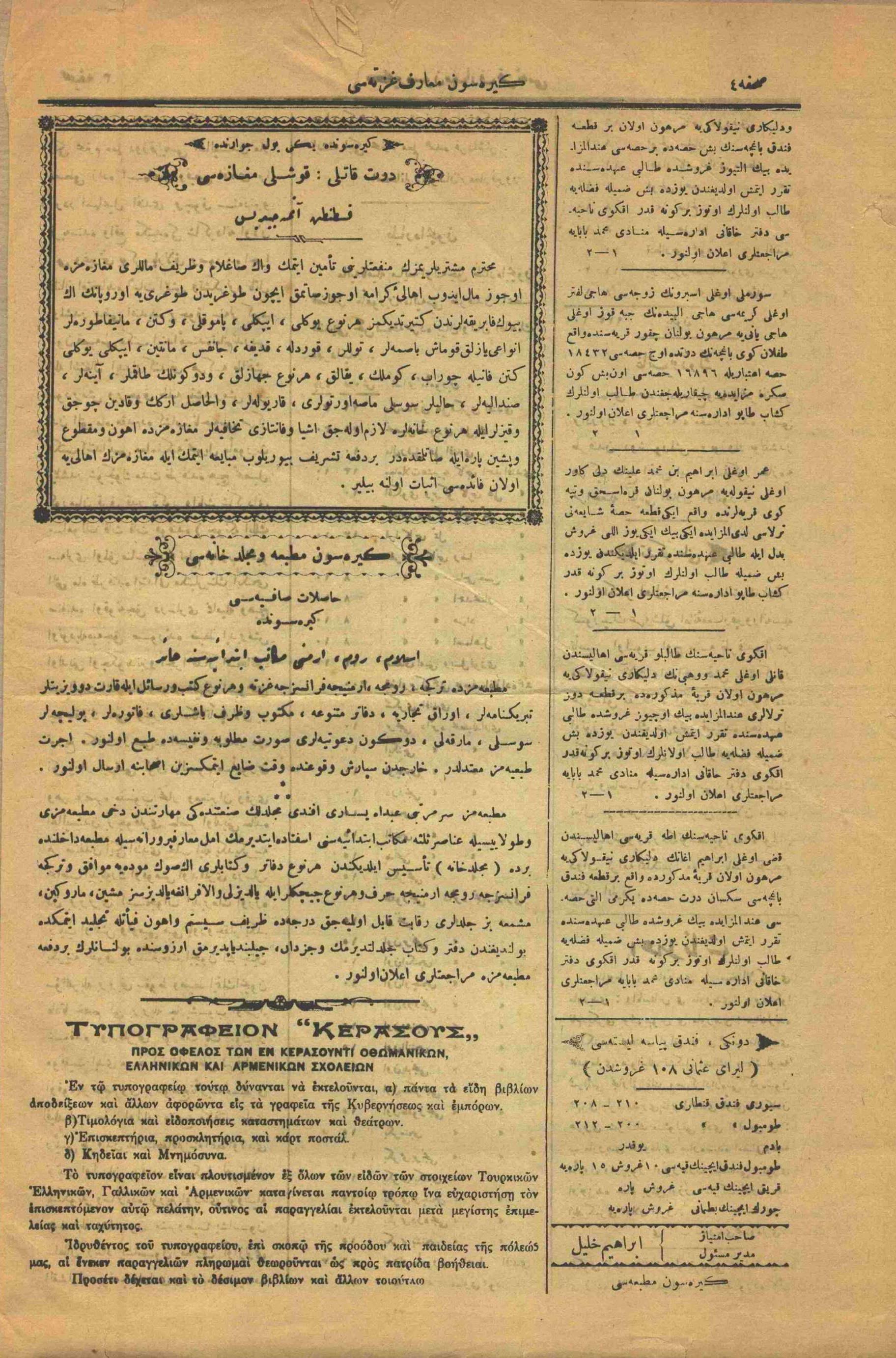 Osmanlıca Tarihi Yerel Gazeteler Transkripsiyonu